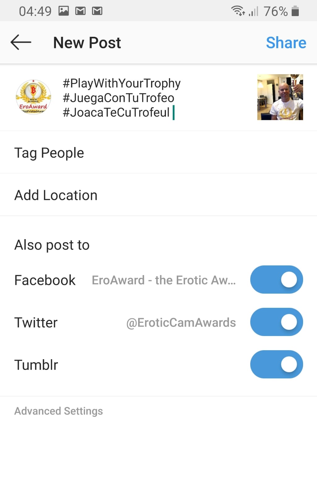 Multiply your results: From Instagram to Facebook page, Tumblr and Twitter From Instagram, you can set it to automatically post your pictures also on your facebook page or profile, tumblr blog and twitter account, the same we do at EroAward:
